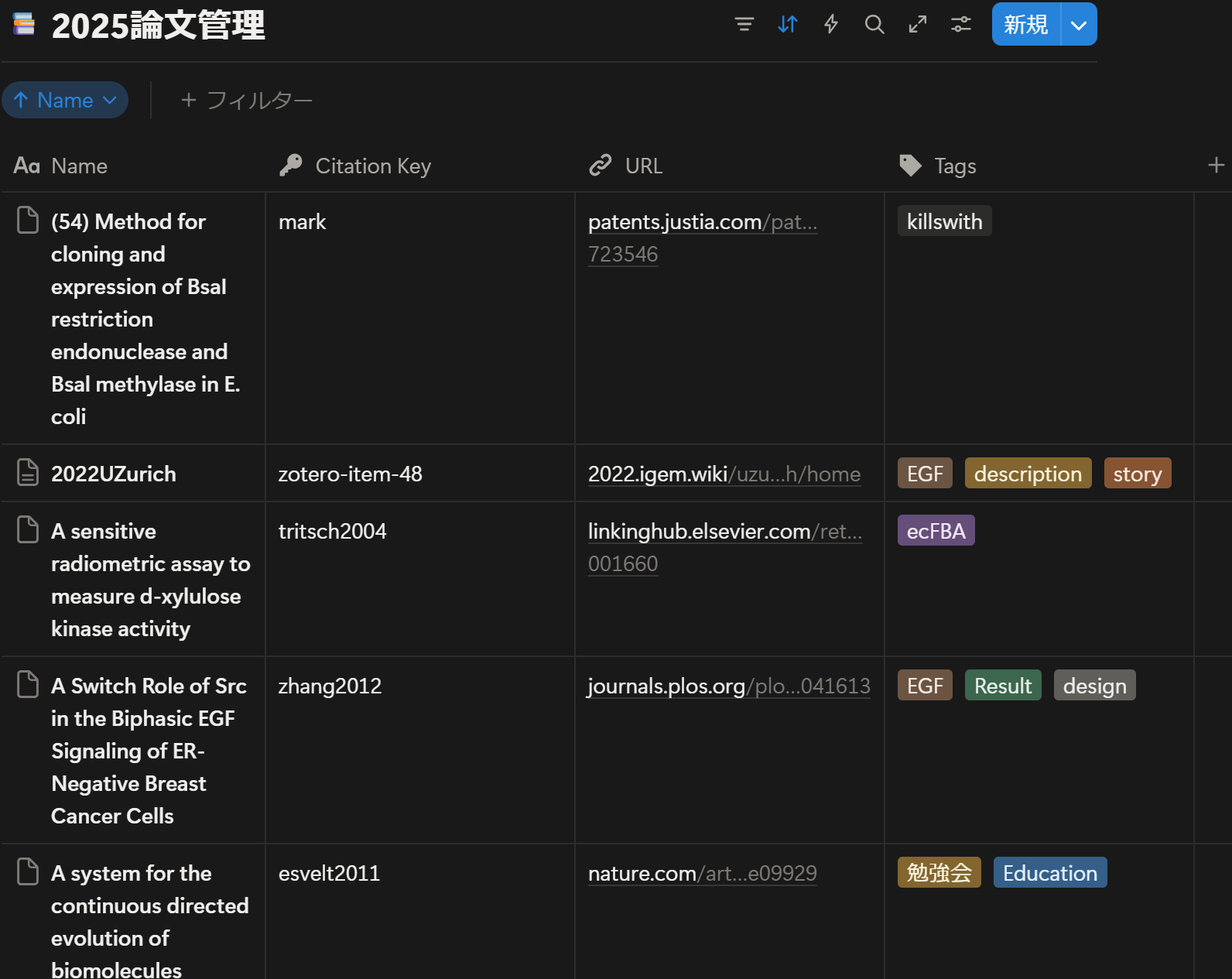 これでNotionのリストに文献情報が共有できました。プロパティの選択で好きに表を作ることができます。