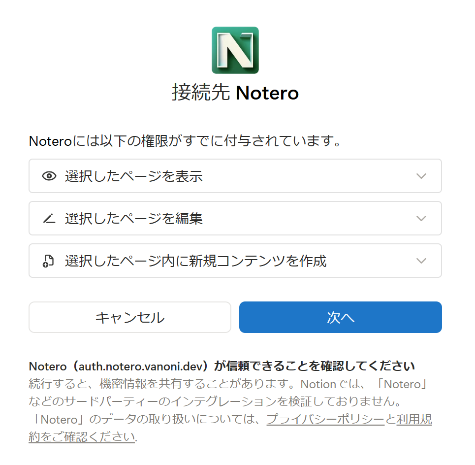 - Noteroへの権限を許可(自分はすでにされていた)