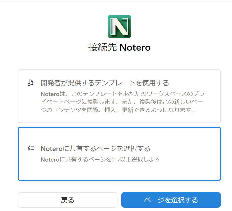 - Noteroに共有するページを選択する