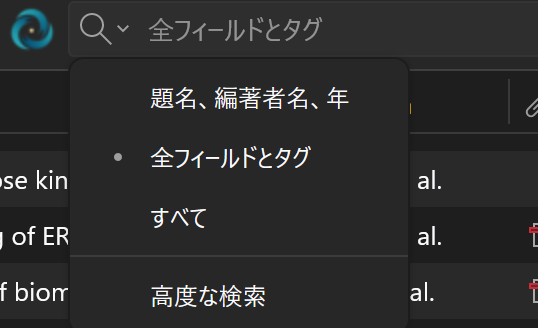 また、高度な検索を使うとAND、OR、NOT検索ができるのでタグをつけ忘れている文献を探した理ができます。