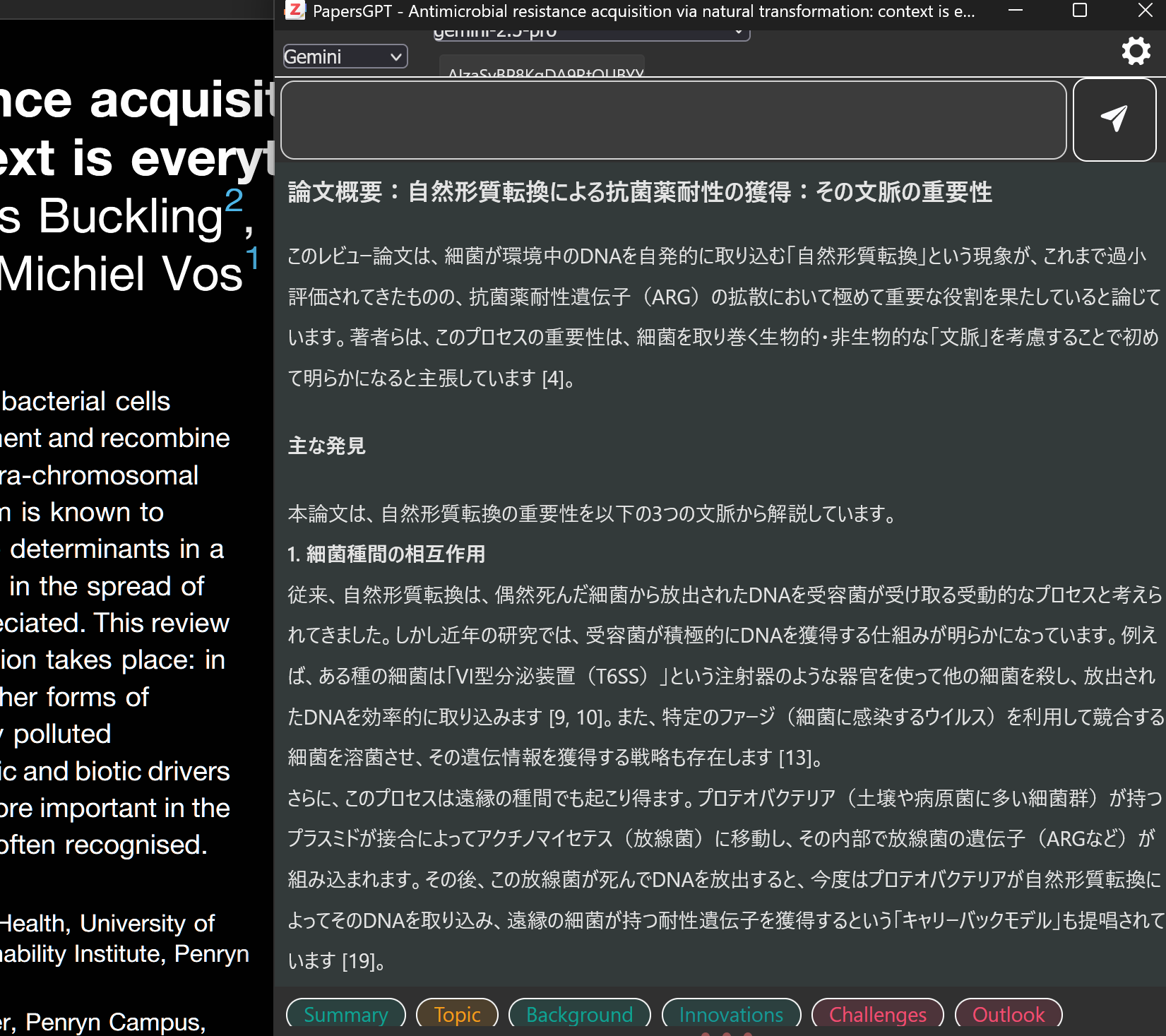 GeminiやChat GptなどさまざまなLLMのAPIを活用してZotero内のPDFエディタで選択した文を英訳してくれる拡張機能です。少しの利用ならGeminiのAPIを使って無料でできるのでZoteroに取り込んだPDFにメモりたい人は便利かも
