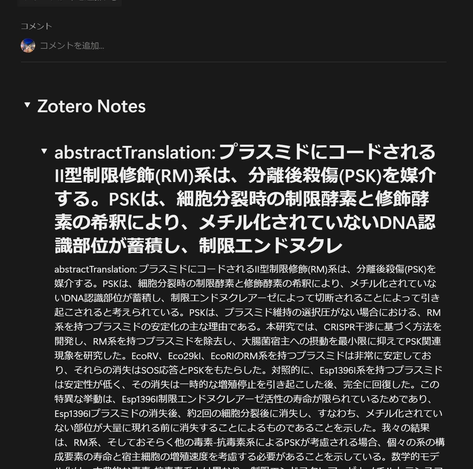 ちなみにnotionというタグはNotion に同期済みの文献に勝手につくやつなので気にしなくていいです。