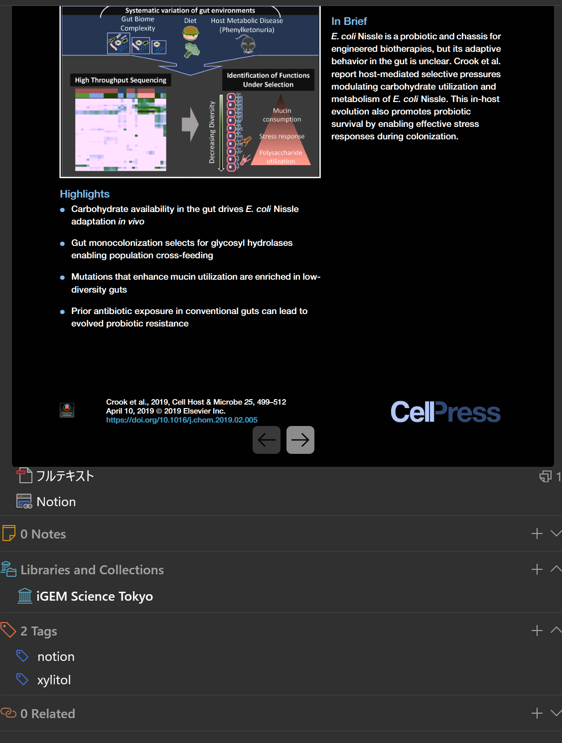 さて本題です。私は去年wikiを書いている途中に非常に苦しんでいたことがあります。それは参考文献の引用整理です。昨年度のiGEM Tokyo Techでは参考文献の管理が結構甘くwikiを書くときに非常に苦労しました。当時2年生の私はそのあたりの雑用をやっていたのですが昔見た参考文献がどこに行ったか分からなくなってNotionをあさったり、文章を修正するたびに参考文献の番号がずれて一から順番を手動で直さないといけなかったりマジで時間のロスがヤバかったです。なので今年度はチームメンバーやOBOGの助けを借りながら「ぼくのかんがえたさいきょうのiGEM用参考文献管理」を作ってみたので紹介します。他のチームもそれぞれのやり方を確立していると思いますが、参考程度にご覧ください。