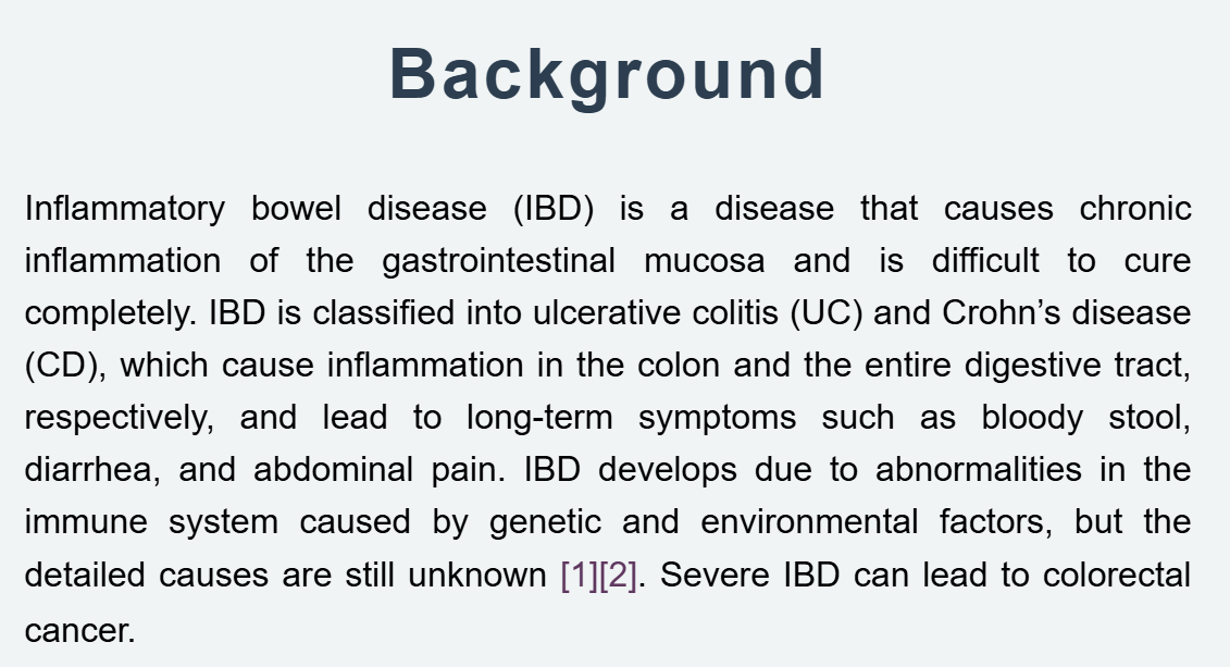 以下はうちのwikiのDescriptionの一部です。「gearry2016」とか「ananthakrishnan2018」とかがCitation keyですね。ほんとはCitation keyを書くだけで引用を作りたかったのですがそこまではできず…wikiを書くときはひたすらCitation keyをコピペしてました。