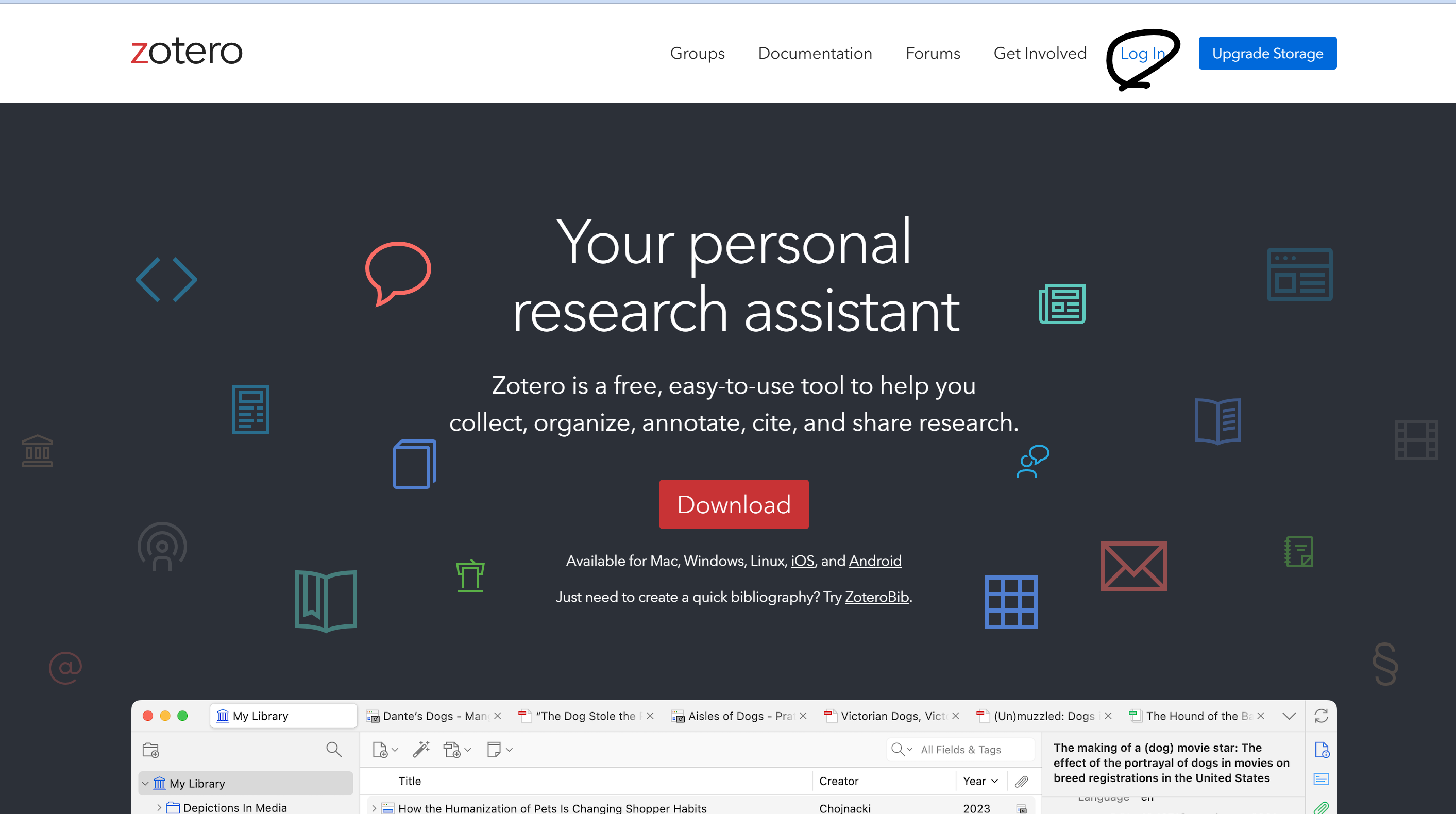 会員登録が終わったら Download からそれぞれのOS用のZoteroをダウンロード